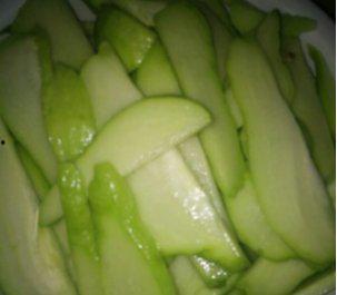 6. 腌制:将调味好的佛手瓜片放入干净的容器中,密封好,放入冰箱冷藏腌制24小时。