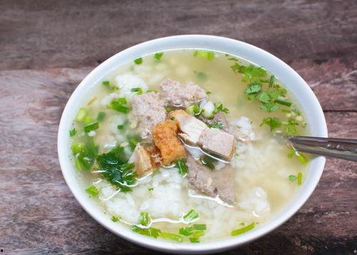4. 加入蓝瓜和猪肉:将蓝瓜块和腌制好的猪肉片放入锅中,继续煮至粥熟。